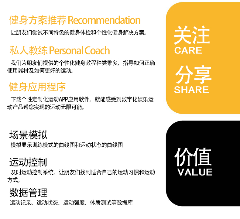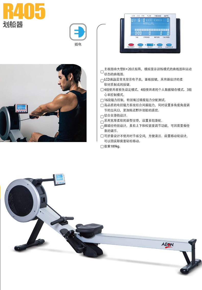 1、面板:主视窗由大型8x20点的距阵,模拟显示训练模式的曲线图和运动状态的曲线图。 2、豪华LCD液晶蓝背光显示电子表,面板按键,采用最新设计的柔软材质制作成的按键。 3、显示功能:使用者程序、阻力级别、运动量、心率、时间/500M、瓦特值、运转时间、每分钟的转速、米数(距离)、卡路里 4、模式:4组使用者预先设定模式,4组使用者的个人数据储蓄模式,3组心率控制模式 阻力系统:16段电磁控阻力系统,特别做过精度阻力分配测试。 5、高怕品质的电控阻力系统结合风扇阻力,同时设置多角度调节出风口,更加贴近野外划船的感觉。 6、全铝合金滑轨设计。 7、采用宽厚柔软的新型坐垫,设置多组滑轮。 8、脚踏经特别设计,具有上下和松紧度调节功能,可因需要做任意的调节。 9、可折叠设计不适用时可节省空间,方便清洁。前置移动轮设计,可以因实际需要轻松运动。 占地面积:2400*550*850mm 包装尺寸:1470*782*320mm 毛重:50.45kg 净重:43.73kg 最大承重:189kg