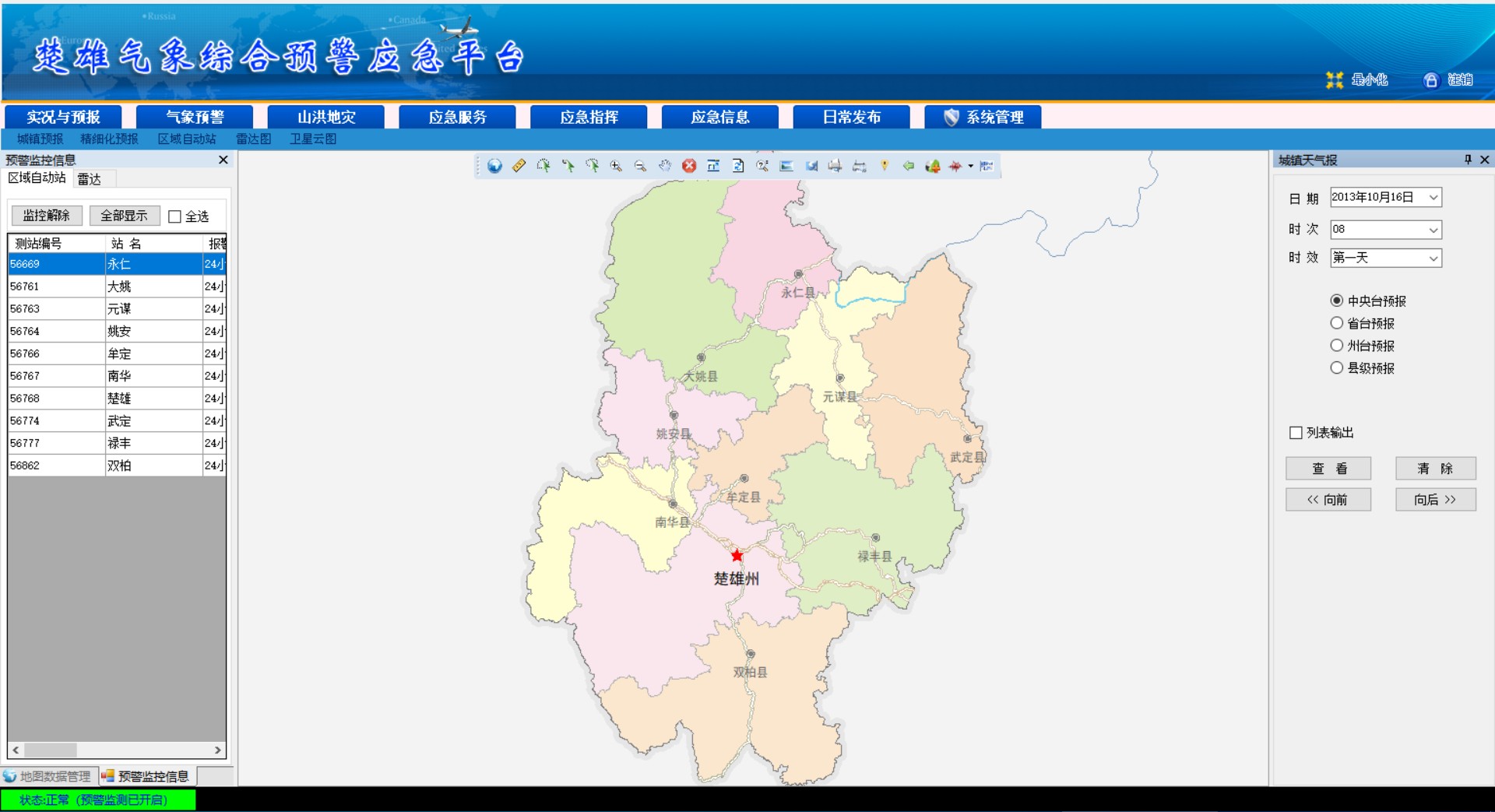 云南省楚雄市综合气象业务平台是云南省楚雄市气象局的重要软件项目,遵循国家气象局关于气象综合业务改革发展要求,立足气象局实际业务需求,融合本地化数据资源,满足全方位日常业务工作需求,力图提升业务工作效能,包括综合观测、预警预报、公共气象等功能。